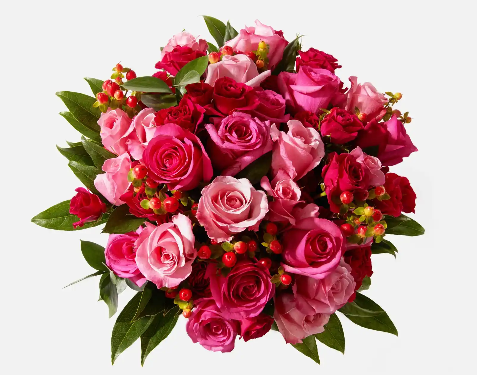 Bes de Rosella susurra historias de encanto y sofisticación. Las rosas ecuatorianas y rosas spray ecuatorianas se entrelazan con bayas de hypericum en suaves tonos rosados, invitando a la admiración y despertando emociones. Esta sinfonía romántica cautiva los sentidos, mientras que el follaje de cocculus y ruscus esmeralda aporta movimiento y ligereza a la composición, creando un bouquet lleno de elegancia y armonía. ✨